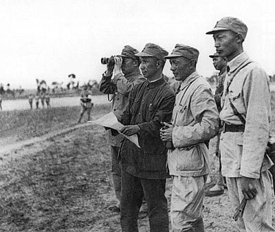 1940年,粟裕(右一)、陈毅(右二)在苏北黄桥决战前夕