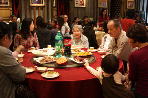 中午,大家围桌而座、欢聚一堂共进午餐。老人们,同举杯、共庆贺、忆往昔、话家常,脸上露出了幸福的笑容。