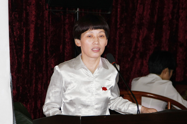 鑫山公司党委副书记丁香向考评组一行做汇报