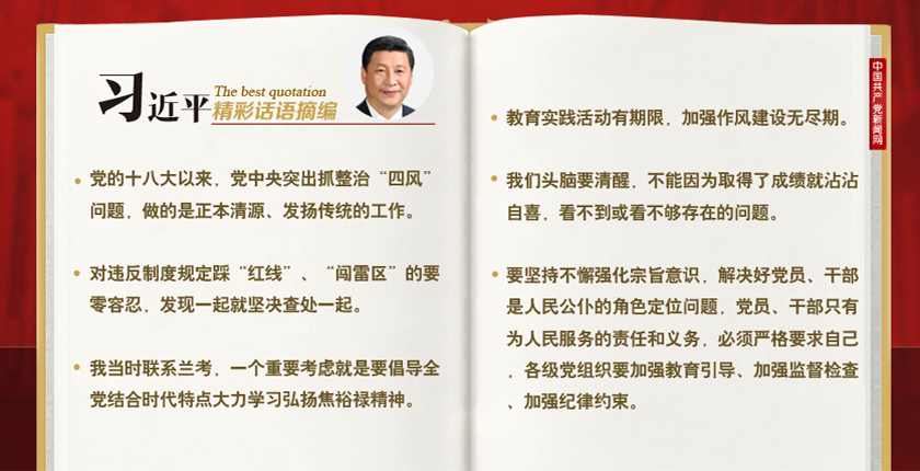 编者按:8月27日,中共中央总书记、国家主席、中央军委主席习近平在中南海听取兰考县委和河南省委党的群众路线教育实践活动情况汇报,并发表重要讲话。现将部分精彩语句摘录如下: