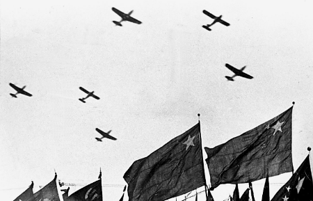 开国大典上,新中国空军的飞机从天安门上空飞过。(资料图片)