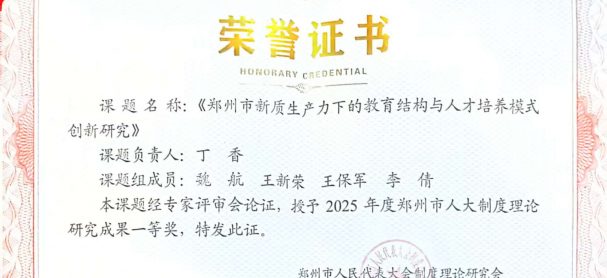 2025年12月,丁香课题组提报的《郑州市新质生产力下的教育结构与人才培养模式创新研究》凭借扎...